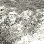 En tierra, hilando vientos, es un dibujo realizado entre Bogota y Manizales. Un paisaje tejido al ritmo del viaje, a la frecuencia del día y demás vientos que te pasan por la cabeza. El dibujo une los trayectos de un tejido de variaciones atmosféricas donde las formas aéreas se condensan en un azar imaginario.