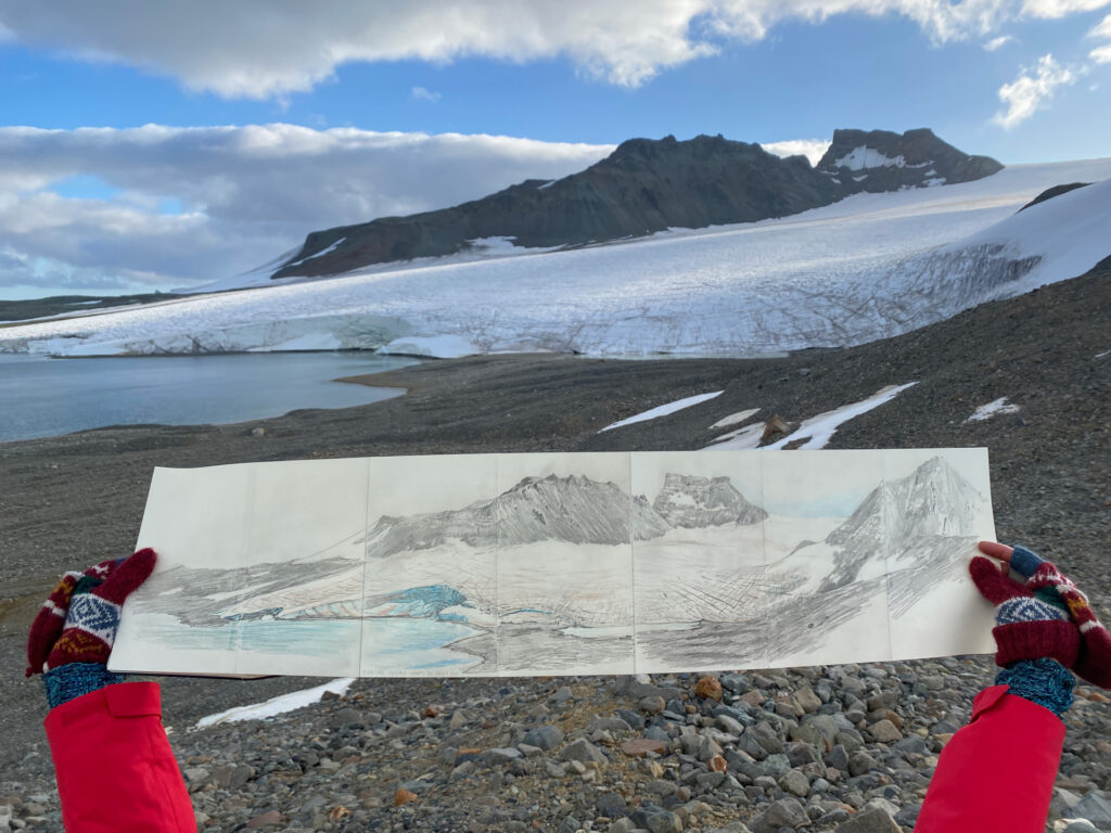 Among her drawings and notes, we find pieces with varying degrees of finish—from more complete to sketchier ones, depending on the work stage. There are field notebooks with in situ notes, marked by a quick, energetic, and vibrant line. There is life, body, and touch in these sketches made under the harsh climatic conditions of a glacier. There are larger drawings that delicately portray suggested profiles of peaks, slopes, and ridges—as if the artist seeks to highlight their inner essence rather than emphasize their iconic outer form. There are more elaborate cartographies that show, with care and precision, the glaciers’ surface. But all these works share a common feature: by removing the horizon, the materiality of what is represented becomes the focus. Matter, once again, takes center stage in these works, shifting from landscape to geological subject with agency.