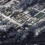 Esta mirada glorifica y desnuda la atmosfera de una ciudad inserta en nubosidades negras que se desvanecen en el diseño urbano de superficie de granito oscuro del lugar de exposición.