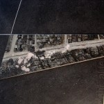 Panorama dirige la mirada del espectador al espacio expositivo a través de la instalación de vistas a vuelo de pájaro de la ciudad de Bogotá en el piso de la galería.
