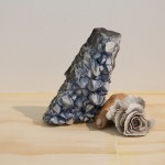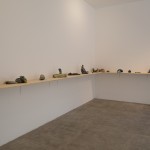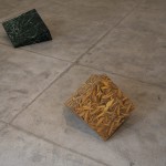 The artist explores two of her obsessions: The landscape, as a transitional scenery, and water as a depiction of fluidity. This exhibition gives the perception of a liquid environment and therefore unstable. Flowers, rocks, crystals, bowls, and tree’s branches in porcelain reflect nature’s fragility that recalls the journey of water. The cubes are a synthesis of the urban landscape. They remind us the possibility of solid elements that vanish on the scenery. The drawings of water portray different instances of this mutable element. However when it is represented by strokes, enters in a state of stillness to be contemplated.